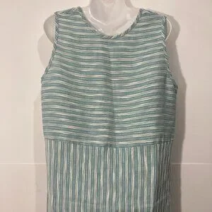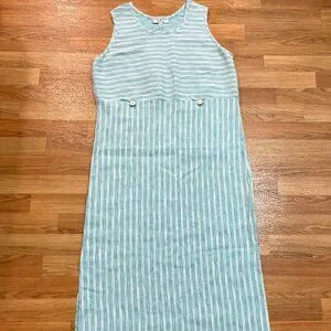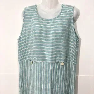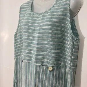 Vintage Cynthia Max Relax Linen Blend Maxi Dress Sleeveless Pocket Slit Green L