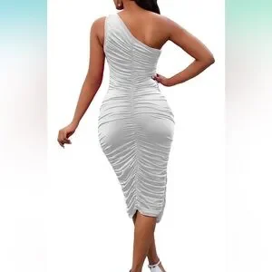 Perusal Sexy One Shoulder Sleeveless Party Club Ruched Cocktail Bodycon Midi Dress New Size Medium