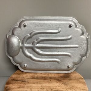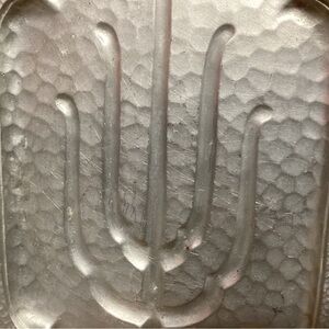 This is a Vintage & Collectible piece Made of Cast Aluminum in the Hammer Finish Style. It’s The Original Sizzling Steak Platter by Wagner Ware of Sidney Ohio. The back side also says: Trade Mark Reg. U.S. Pat. Off. And then No 3341. This rare item dates back to the 1940’s or so based on all my research.