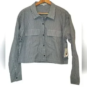 NWT And Now This Navy White Striped Cropped ButtonUp Size M