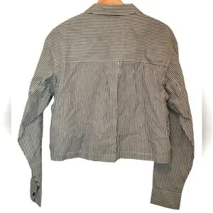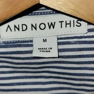 NWT And Now This Navy White Stripe Cropped ButtonUp Size Medium, front faux pockets, full buttonup, Cropped, long sleeve, 100% cotton, pit to pit 23", length 19", extra button attached, excellent new condition, no flaws (13A)