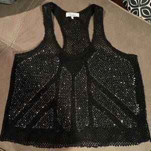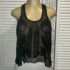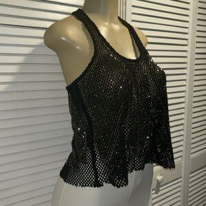 This tank is in perfect preowned condition! Black with silver/pewter beads. Cropped Racerback. Size small.