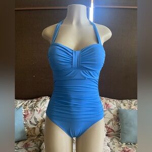 Tommy Bahama Ruched Halter-Top 4 Tummy Control Cobalt Blue One-Piece Swimsuit