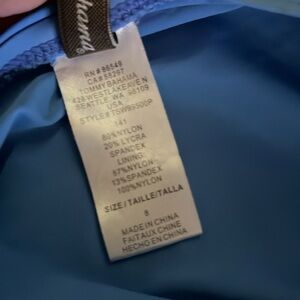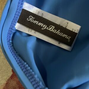 Tommy Bahama Ruched Halter-Top 4 Tummy Control Cobalt Blue One-Piece Swimsuit this is a brighter blue not as dark as the stock photo One-piece swimsuit. Full bottom coverage. Tummy control panel for slimming effect. Lined. Nylon/spandex; lining: nylon/spandex. Hand wash. Imported. Color: blue