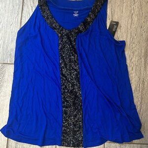 ANA Women’s Colbalt Blue and Black Sequin Dress Tank 2X