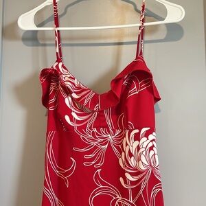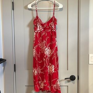 Vintage Red Floral Midi Dress Medium y2k 90s