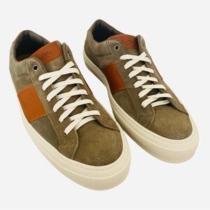 Good Man Brand Men’s Sneakers 9.5 Army Green Suede Brown Leather Low Top Italian
