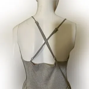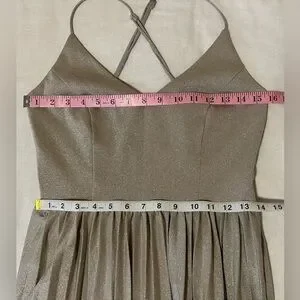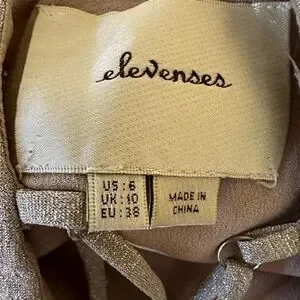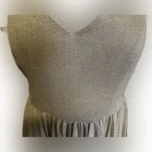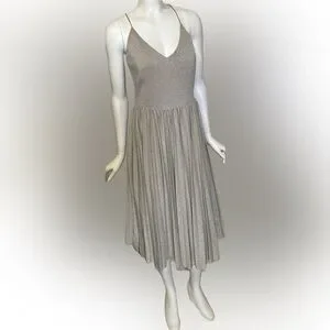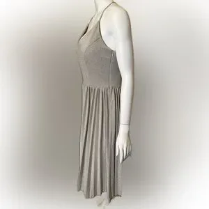Anthropologie Elevenses Lunar Pleated Midi Dress Gold Sparkle Metallic Size 6