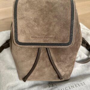 Brunello Cucinelli Logo Embossed Drawstring Backpack in warm beige