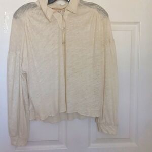 XS Free the People Long sleeved top.Button cuffs,collared.with 3 buttons.Linen and cotton unconstructed,waist length,great with jeans