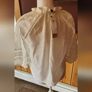 NWT: Banana Republic Textured Eyelet Blouse in off white Size Small