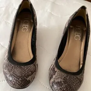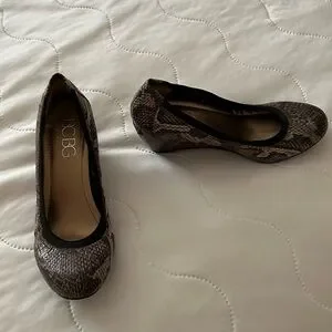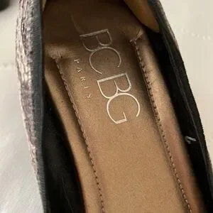 BCBG Paris wedged heel shoes W round toes snake print sz 8 in good condition