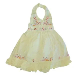 So cute halter dress with embroidery, shirred back, and tie straps in back. good condition