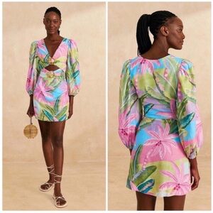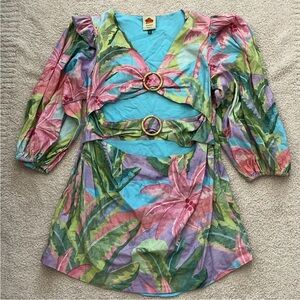 NEW Farm Rio Beach Vibe Mini Cutout Tropical Dress Size Small