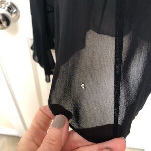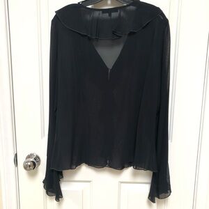 Karen Kane sheer black ruffled blouse
