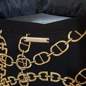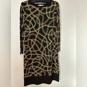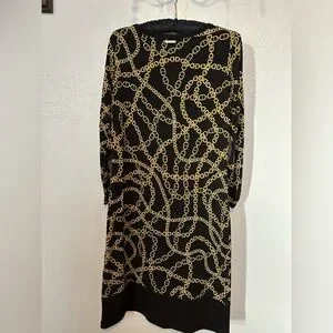 Michael Kors long sleeve black dress, gold chain print size XS