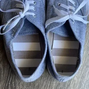 Gray and white flat sneakers shoes