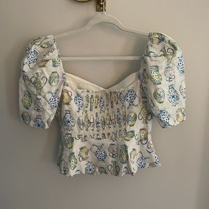 Aritzia Fatale Blouse Sand/Cobalt