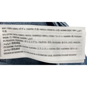 Body: 92% cotton, 6% polyester, and 2% elastane. Machine wash cold.