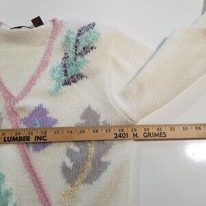 Ginenne Womens Vintage Sweater Size M Embellished Leaves Pullover Pastel