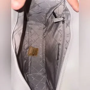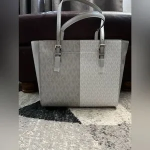 NWT Michael Kors purse. Has a pocket back of the outside of the purse. One zip pocket on the inside. And the purse zips close. White and grey. From a smoke free home.