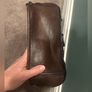 Here is this amazing coach bag up for grabs! This is seriously like new, I used this maybe once or twice. Collectors piece for sure. I even have the original purchase receipt and original dust bag, no major call outs, the pictures speak for themselves. 12 inches across, bag itself is 10 inches tall, 4 inches across at the bottom. Shoulder strap including the clasp is 27 inches.
