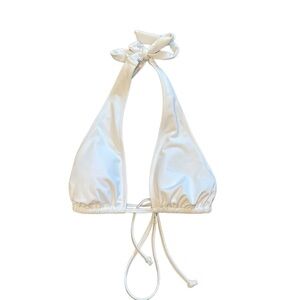 NWT PINK Lightly Lined Plunged White Halter Bikini Top L