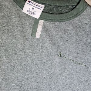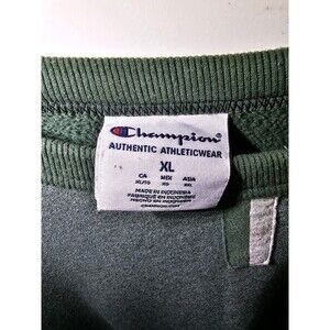 Mens XL Champion Sweatshirt Sweater Green Embroidered Logo Chest + Sleeve Crew
