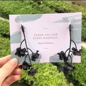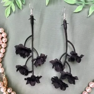 Black Flower Stem Dangle Earrings