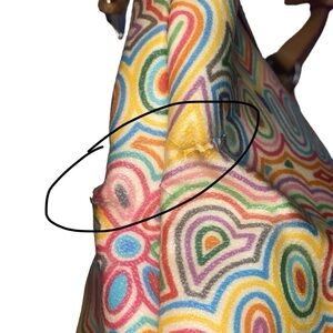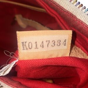 Very good condition, has flaws. Rare/vintage 80s, hobo/shoulder style bag, has rainbow scribble and logo throughout, has an adjustable top handle, a functional full-zip top closure, a red interior lining, a functional interior zip compartment, an interior pocket slot, and a silver-tone keychain with the logo.