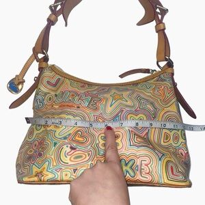 Rare Vintage 80s Dooney & Bourke Lucy Tan/Rainbow Multicolor Scribble Hobo Shoulder Bag