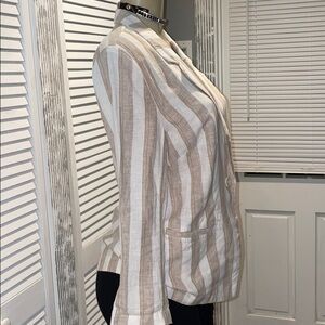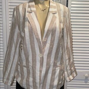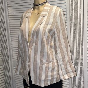 CHICOS Striped Linen One Button Blazer