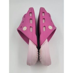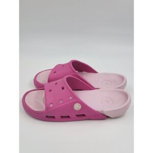 Crocs Classic Kids Slides Girls Pink Size 3 Junior . In good pre-owned condition. Flaws-few light spots on footbeds see pictures above.