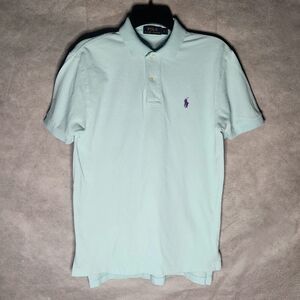 Women's POLO Ralph Lauren Original Fit Mesh Polo Short Sleeve Shirt. Ribbed Polo collar, Unisex, Pre-loved. Color: A shade of Blue.