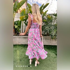 Show Me Your MuMu Garden Midi Dress in Cottage Floral Multi. Size medium. Worn once for a wedding. Has been dry cleaned.