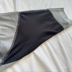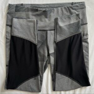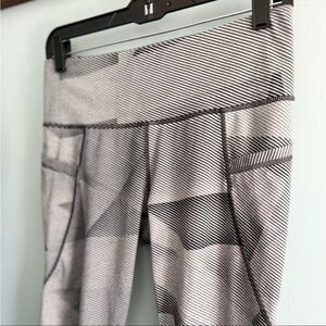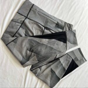 ATHLETA striped leggings. Gray and black size small. Pockets, hidden zipper