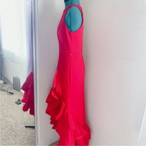 RED BETSY AND ADAM RUFFLE BODYCON SEXY DRESS SZ 8. THIS HAS A SEXY SLIT ON THE SIDE!