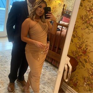 Norma Kamali x Revolve Diana Draped Gown, nude size S