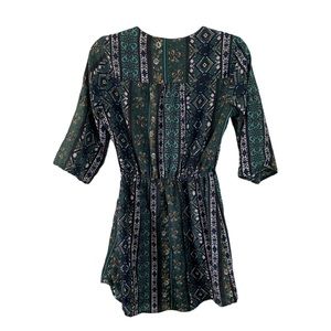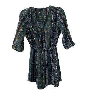 Elastic waist, has tiny loops on waist but no tie included, sleeves can be used two ways, curved hem, used good condition