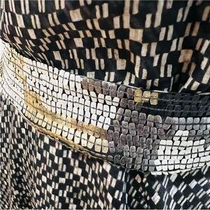 Silk dress with removable sequin belt tons of detail.Pleated at shoulder hidden side zipper.Full skirt