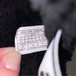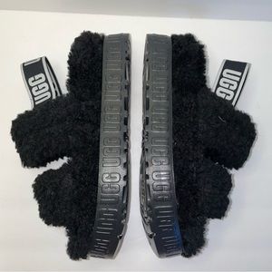 New without box Ugg Oh Fluffita Black. Women’s size 6. Can be worn as sandals or slippers. 1 inch height soles. Small black markings on elastic straps. AN