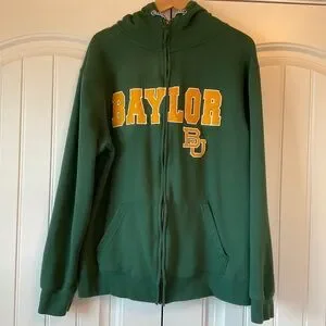 Baylor University, Baylor Bears, school pride, pride, vintage, Y2K, B. U., BU, college, collegiate, football, green, gold, sweatshirt, hoodie, hooded, zipper, pockets