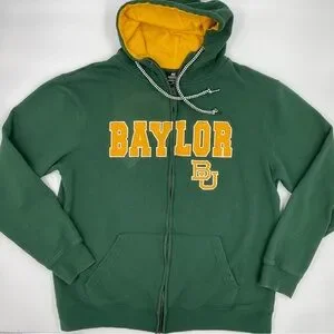 Baylor University Y2K Hooded Zip Sweatshirt Hoodie Green Gold Men’s XL