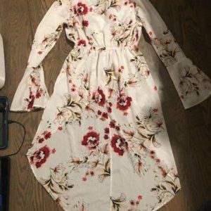 Ying@cai Hi Low Floral Top Long Bell Sleeves