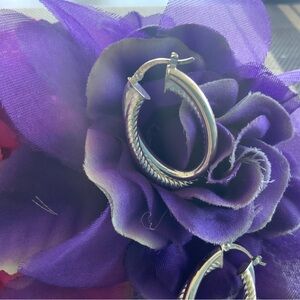 NWOT Is a pair of lovely designed hoop earrings. Has a rope like design and a smooth design together.