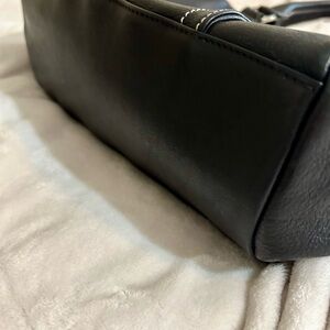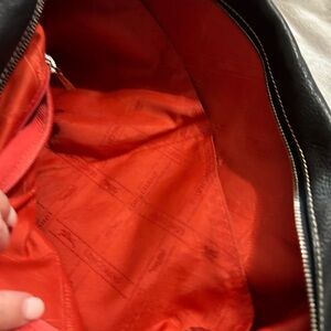 Long Champ handbag. Lightly used black leather with red lining and silver hardware comes with dust bag.