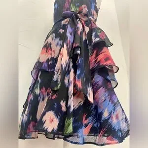 Size 4, super cute, fairy cute ruffles, has waist tie, light weight, zip back with claps.