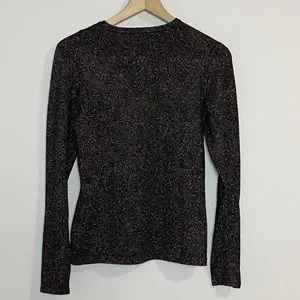 -lightweight stretchy black sweater with gold shimmer detail throughout