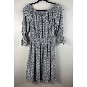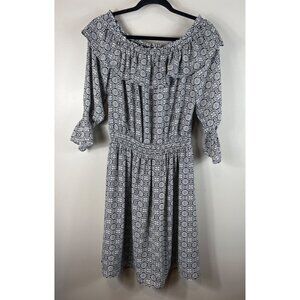 Libby Edelman Dress Black & Ivory Print Dress 3/4 Sleeve Large