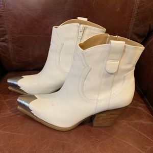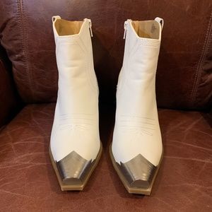 GB White Leather Cowgirl Ankle Boots Women's 8.5M